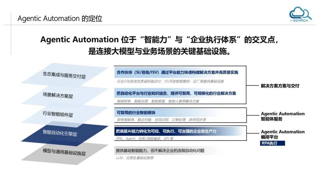 李博将 Agentic Automation 定义为“智能力取企业施行系统的交叉点”。它并非替代现有RPA取AI手艺,而是将其整合为分层、可扩展的手艺架构: